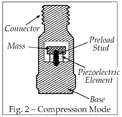 壓縮設計通常是***簡單和***容易理解的。水晶,石英或陶瓷,用彈性預載螺栓夾在震動質量和基座之間。進入基座的運動(振動)擠壓晶體產生輸出。壓縮設計比工業機械監控應用的彎曲設計更適合,因為它們具有高共振和更耐用的設計。壓縮設計通常具有厚基底,并且由于基礎應變和熱瞬態敏感性,應該在厚壁結構上使用。