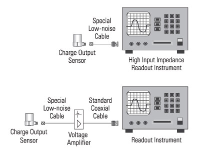 為了正確分析來自電荷輸出傳感器的信號,通常必須將高阻抗輸出轉(zhuǎn)換為低阻抗電壓信號。這可以通過讀出設(shè)備的輸入或通過串聯(lián)電壓和電荷放大器直接完成。每個案例將單***考慮。