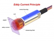 在渦流傳感器中,振動(dòng)的位移測(cè)量限于金屬物體或至少具有金屬表面的物體。傳感器由一個(gè)連接到交流電源的線圈組成。這種配置產(chǎn)生電磁場(chǎng),進(jìn)而在金屬物體內(nèi)產(chǎn)生渦流。這些渦流會(huì)干擾電磁場(chǎng)并導(dǎo)致可測(cè)量的耗散。可能的路徑測(cè)量值介于0.5和80 mm之間。這里的分辨率介于nm和。之間