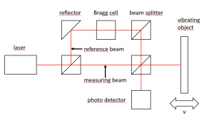的激光多普勒振動(dòng)計(jì)(LDV)使用用于非接觸速度測(cè)量多普勒頻移。原則上,它由激光器,分束器,反射器,布拉格單元和光電檢測(cè)器組成。相干激光通過(guò)偏振分成測(cè)量光束和參考光束。測(cè)量光束投射到振動(dòng)物體上并在其表面上反射。參考波束用于通過(guò)布拉格單元發(fā)送頻移。該頻移允許稍后檢測(cè)運(yùn)動(dòng)方向。兩個(gè)光束的干涉導(dǎo)致頻率調(diào)制信號(hào)。各種解調(diào)方法能夠?qū)⑿盘?hào)轉(zhuǎn)換為路徑或速度信息。商用LDV的頻率范圍在0Hz和30MHz之間,并且可以遵循從100nm / s到20m / s的振動(dòng)速度。